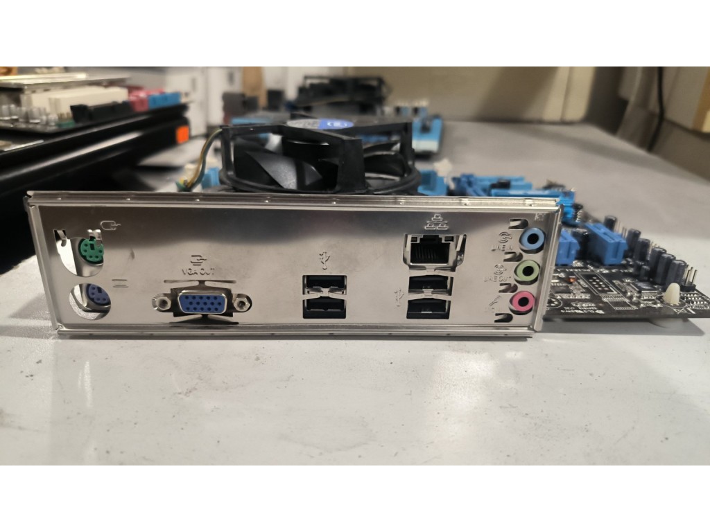 Працездатна. Комплект материнка+процесор (у формуванні ціни участі не приймає, тому не розглядається, простий двоядерний) + кулер + задня планка. Тільки комплектом.