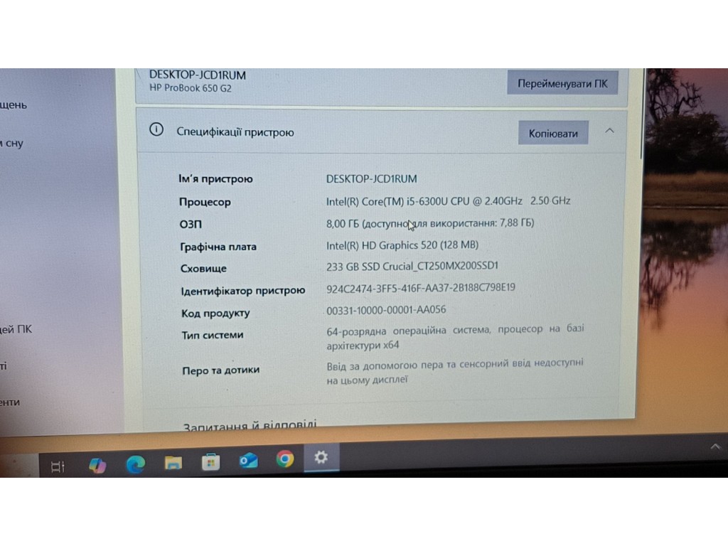 Дісплей без жодних зауважень 15.6" (1920x1080) TN / Intel Core i5-6300U (2 (4) ядра по 2.4 - 3.0 GHz) / 8 GB DDR4 / 250 GB SSD / Intel HD Graphics 520 / WebCam / Win 10 Pro з всіма оновленнями станом на 19.09.2025.