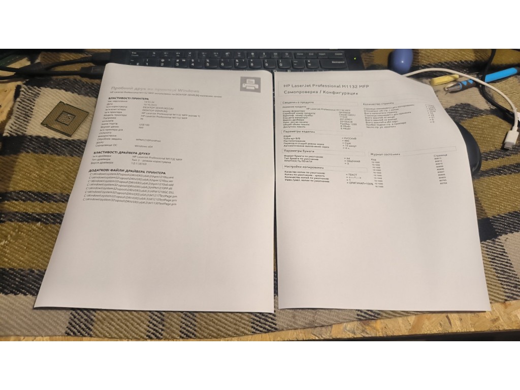 Вихідний лоток присутній, але має зламані кріплення (при встановленні на місті експлуатації можно вклеїти, на функціональність його наявність не впливає).