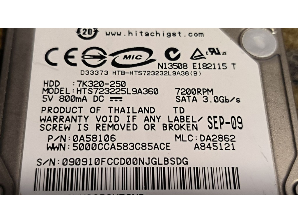 Ноутбучний HDD HITACHI HTS723225L9A360 250GB 7200RPM №12