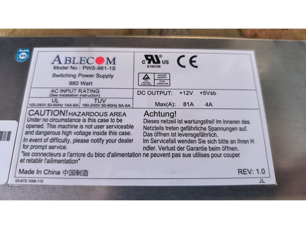Серверні блоки живлення Ablecom 980 Вт PWS-981-1S