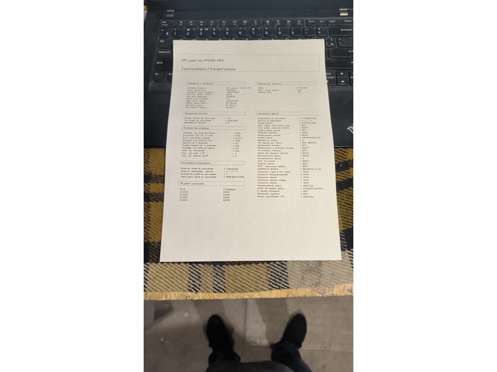 Друкує, сканує, копіює. Невеликій пробіг. Без картриджу HP 12A. Приклад друку сервісної сторінкі на фото. Комплект кабелів +100гр.