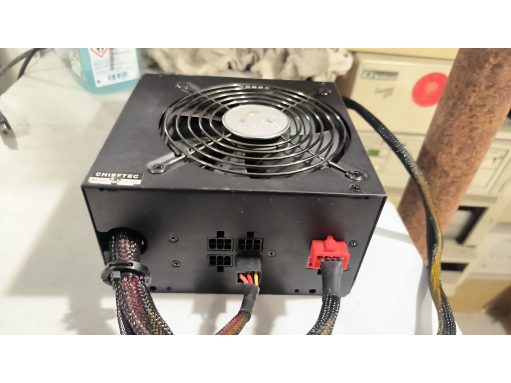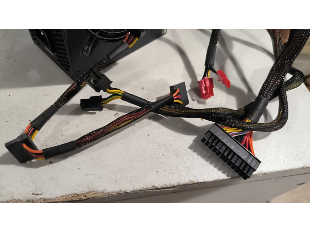 Робочій. Пломба вскривалась для змащення кулера. Живлення процесора 4+4pin живлення відео 6+2pin.
