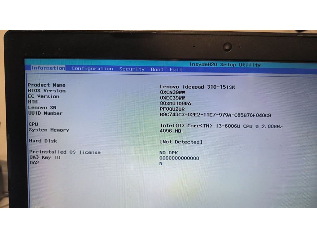 Нема задньої кришки (фото).Захід у біос FN+F2.