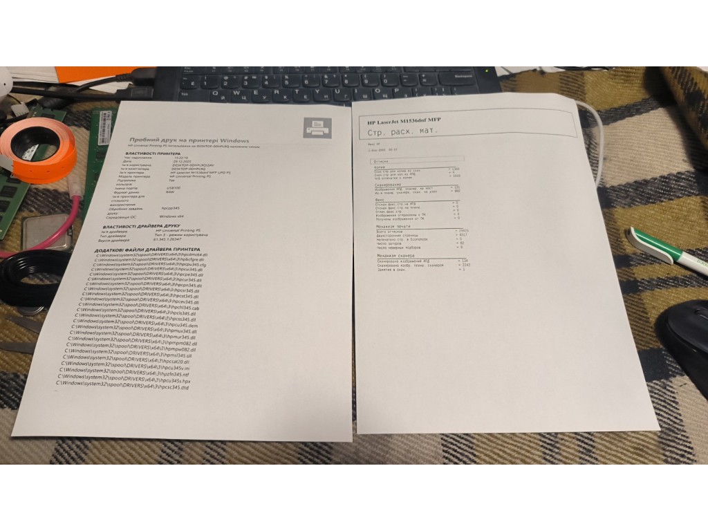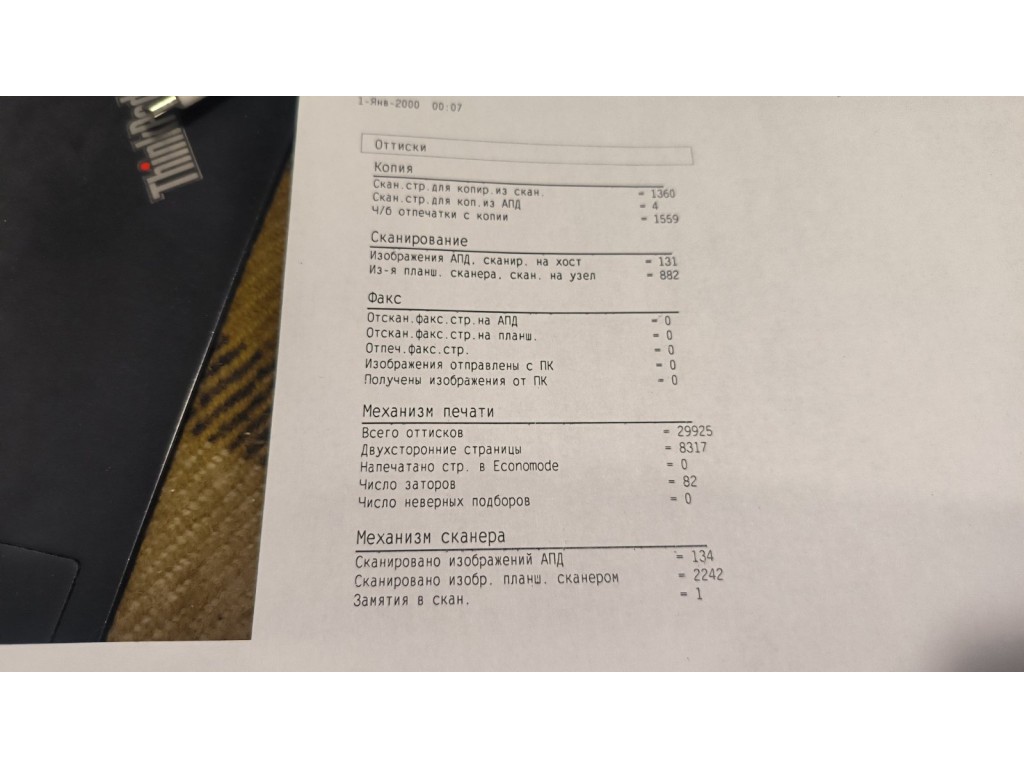 Друкує, сканує, копіює, LAN. Малий пробіг, все працює. Картридж у комплекті, приклад друку та сторінка з пробігом на фото. Комплект кабелів + 100гр.