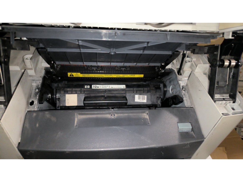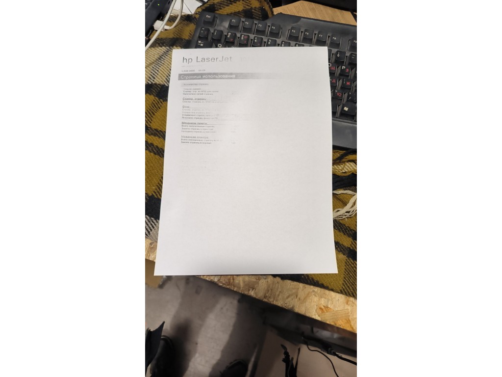 Друкує, сканує, (посторінковий сканер) копіює. Поганий картридж, майже пустий, у комплекті, приклад друку на фото. Комплект кабелів +100гр.