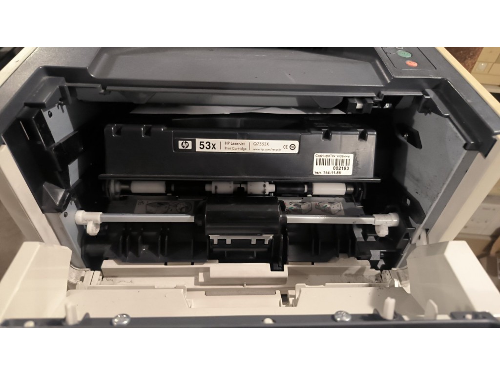 Друкує, дуплекс. Малий пробіг. Пройшов добову перевірку. Картридж у комплекті збільшеного об'єму але сипле тонер. Приклад друку виконано тестовим картриджем приклад сервісної сторінки з пробігом на фото. Комплект кабелів +100гр.