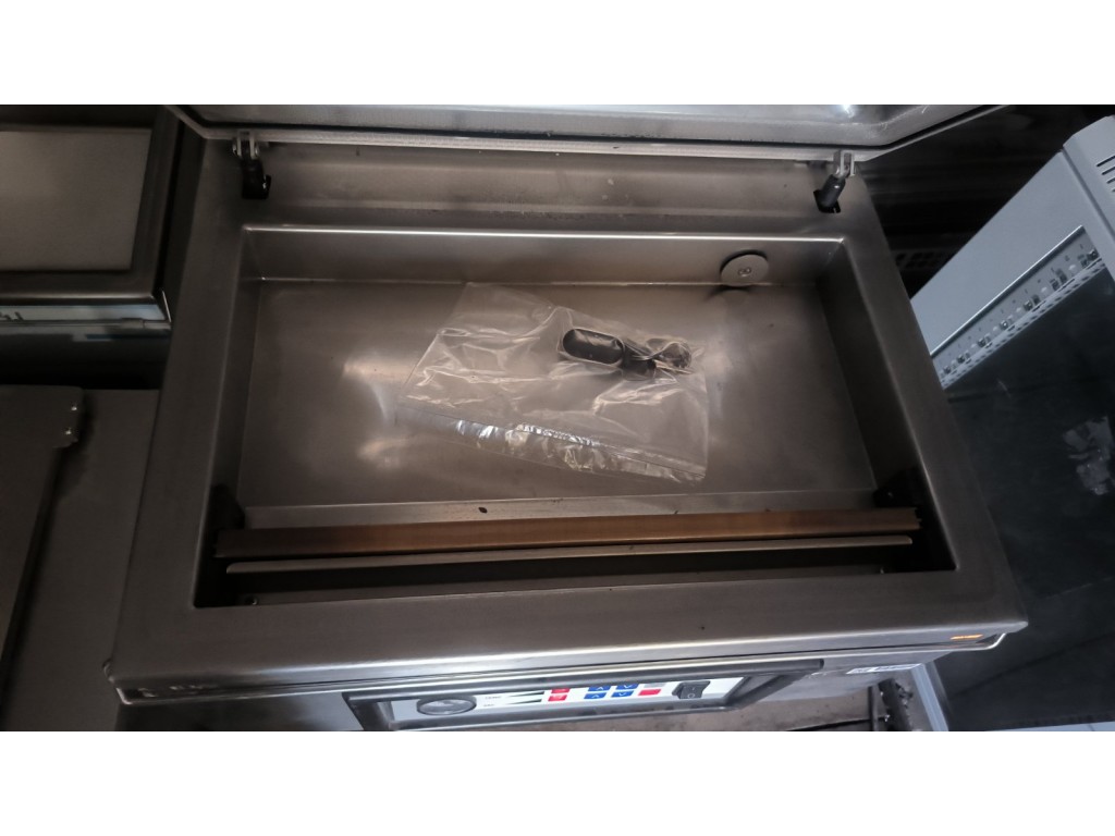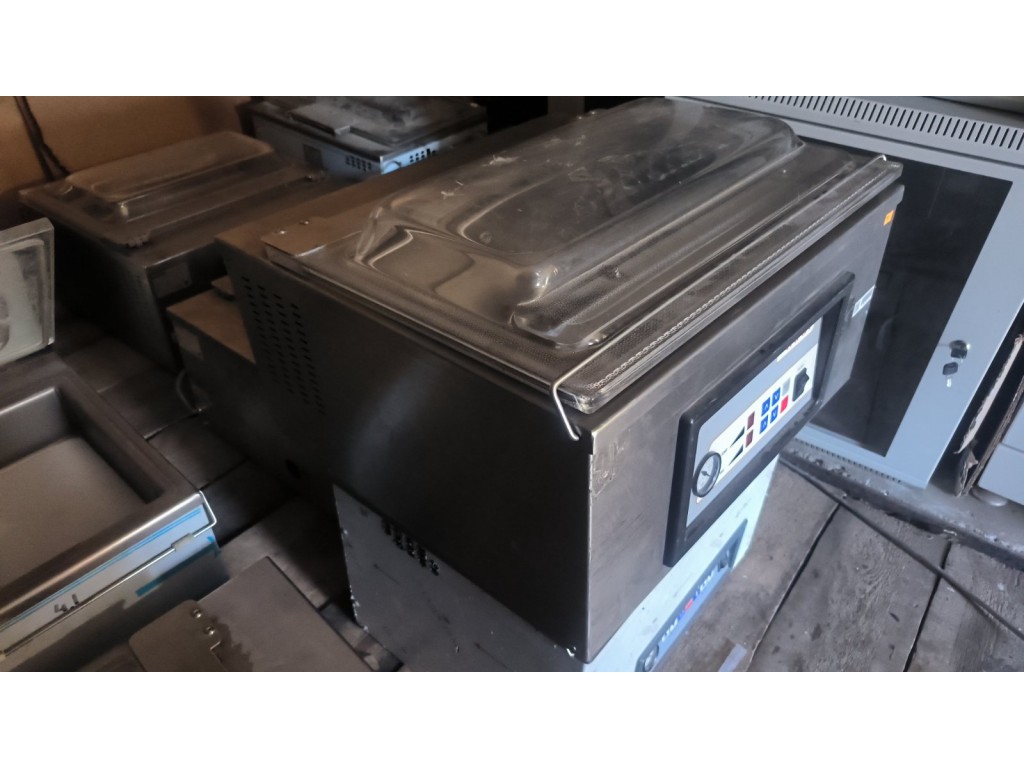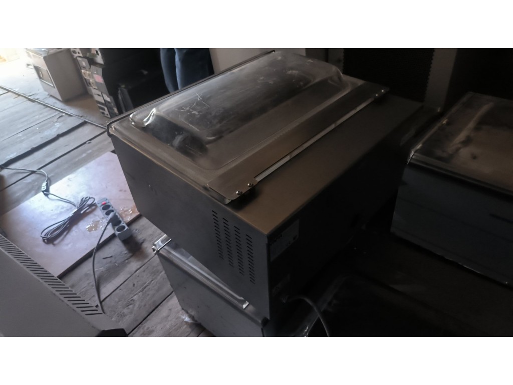 Вакумує, заклеює. Тиск не дуже добрий. Манжета кришки вже стара, чутно як вона пропускає. Амортизатор не відкидує, тримає у тому положенні як відкрити кришку.