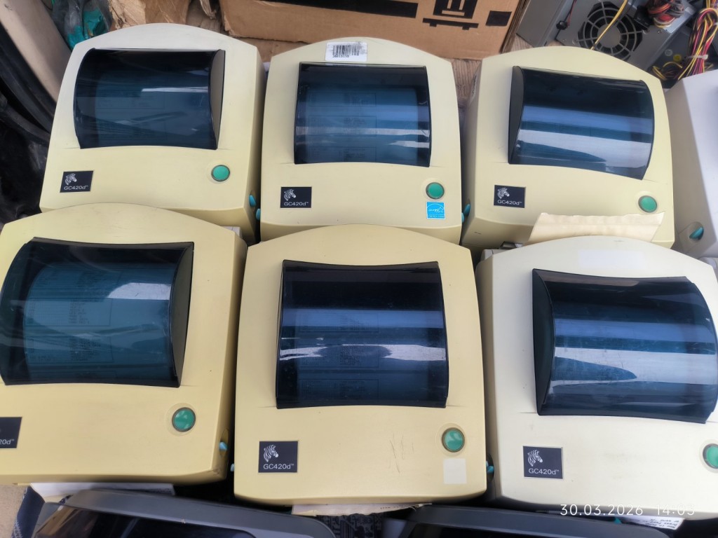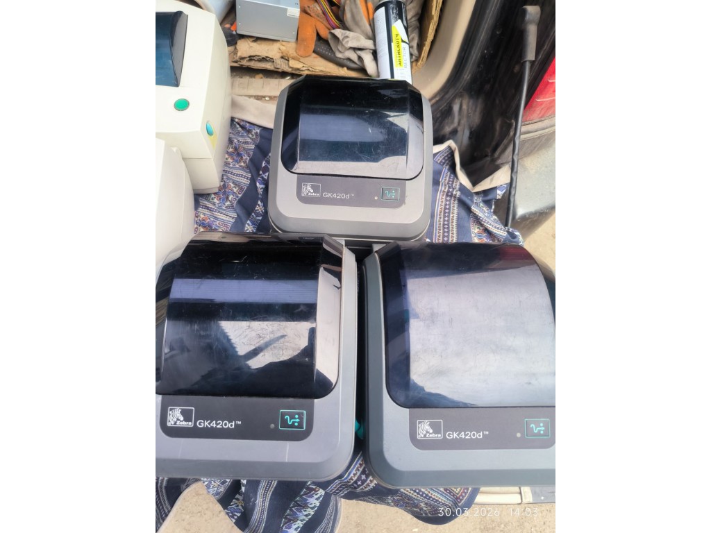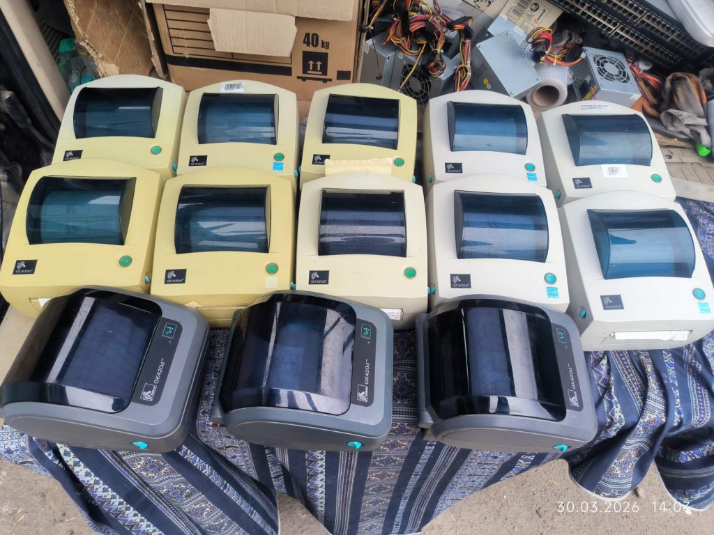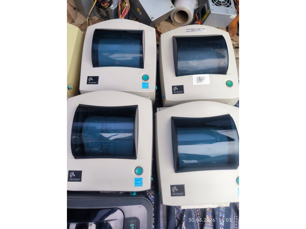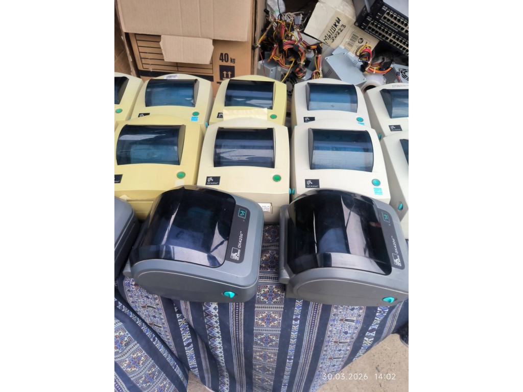 Робочи принтери, друк без полосок. До кожного блок живлення та USB кабель. Всі мають потертості, на фото не видно. Кількість обговорюється їх більш ніж на фото. Жовті GC420d = 1800гр Білі GC420d = 2000гр Сірі GK420d = 3500гр.