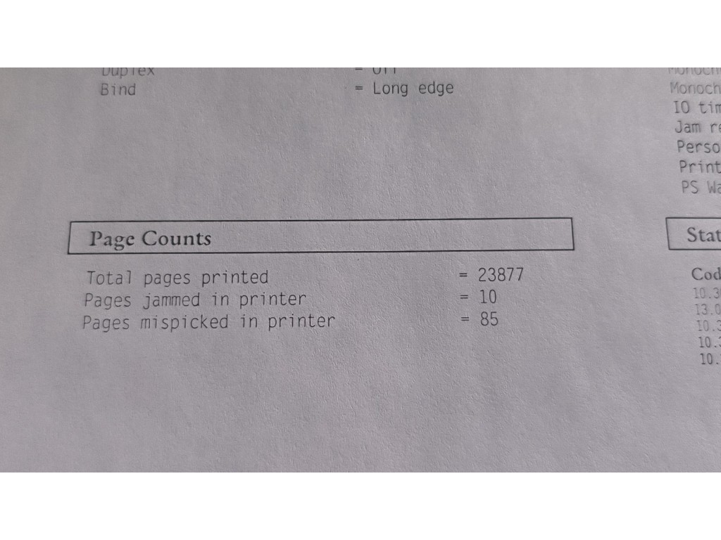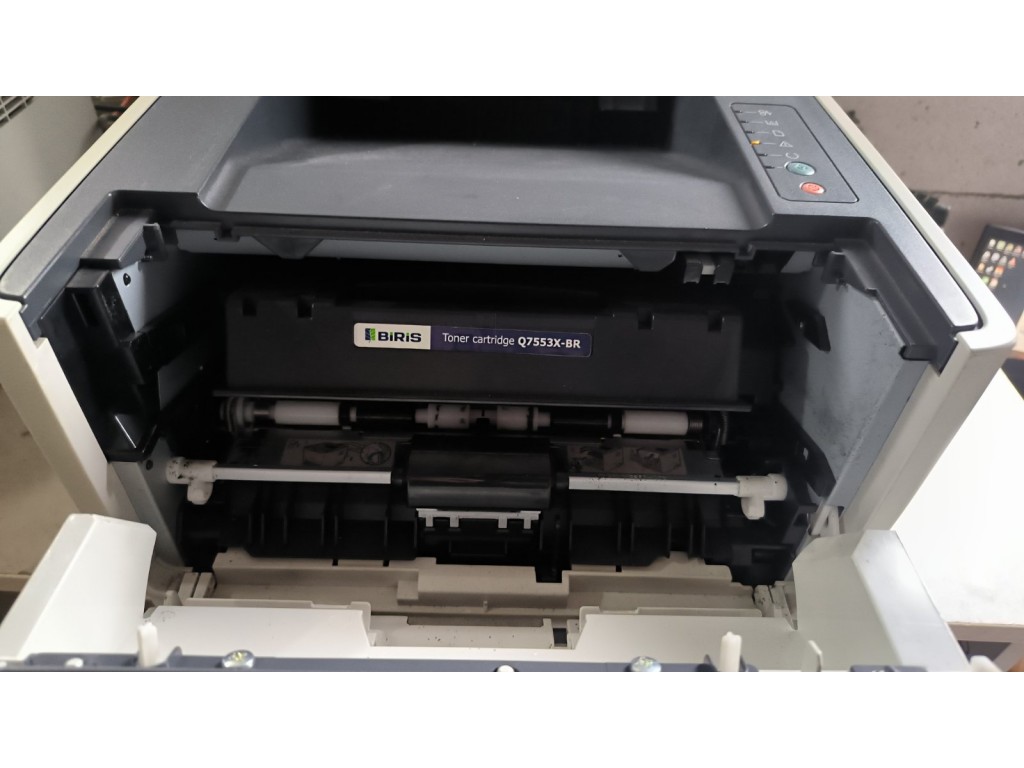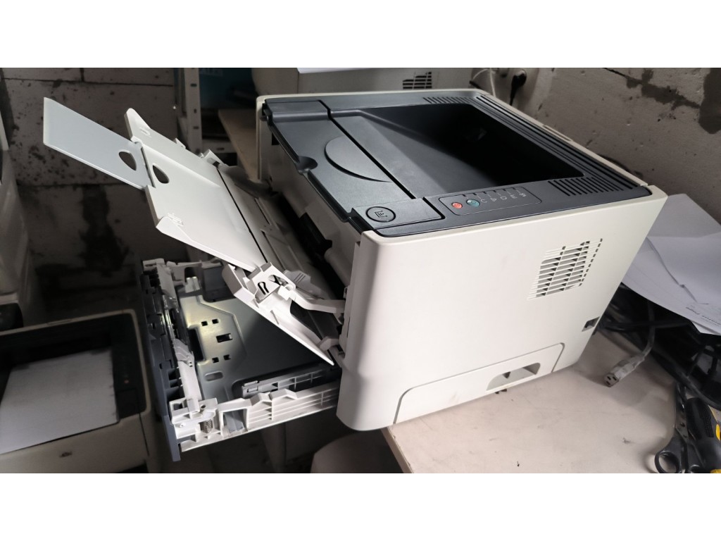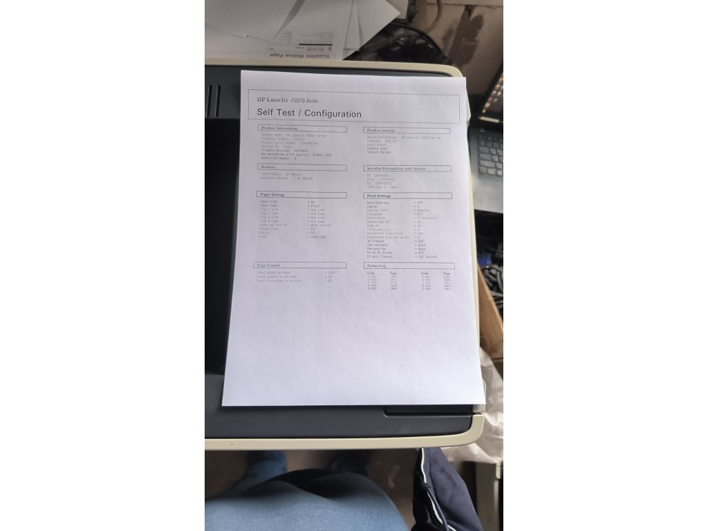 Друкує, дуплекс, малий пробіг, картридж збільшено об'єму у комплекті. Приклад друку сервісної сторінки з пробігом на фото. Комплект кабелів +100гр.