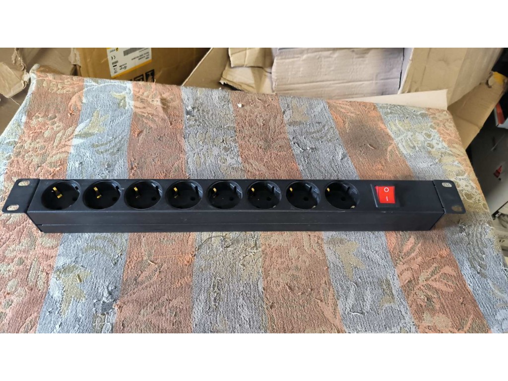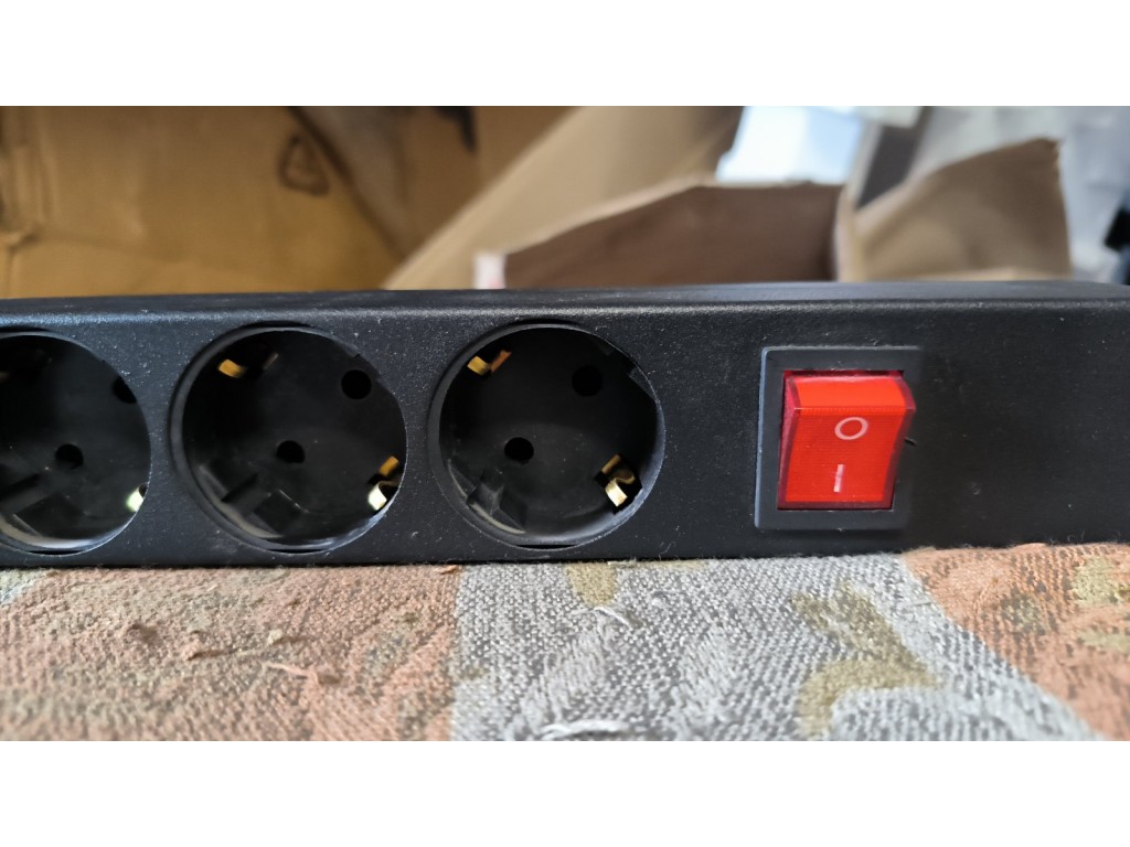 Блок розеток чорний 1U у серверну шафу